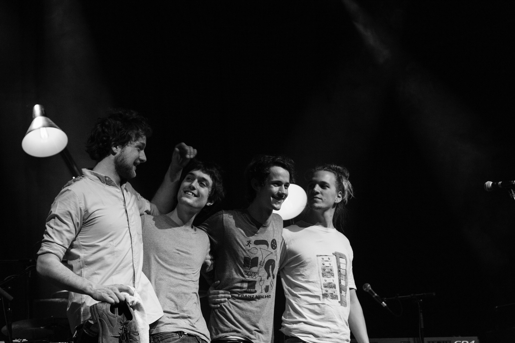 Ich schließe kurz die Augen, um gegen zu checken, was ich bereits vermutete. Ja. Da könnte auch Tom Waits auf der Bühne stehen. Ich öffne die Augen und sehe einen Kerl, der 21, 22, 23 ist. Und ich bin nicht die einzige, die das nicht glauben kann.