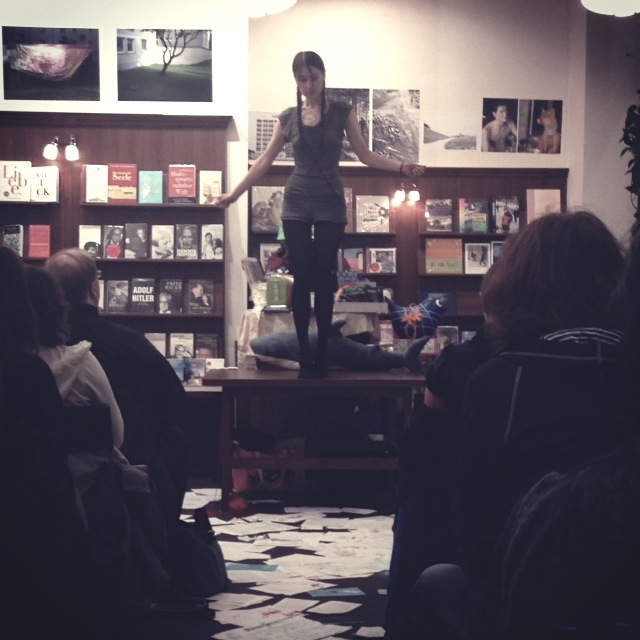 Letzte Woche war ich bei einer ihrer Lesungen. Wobei Lesung das falsche Wort ist, denn sie kann jedes ihrer mittlerweile drei Bücher auswendig. Mit einer kindlichen Stimme und einem leichten Lächeln auf den Lippen erzählt sie bildgewaltige Passagen aus ihren neueren Büchern, bevor sie zu ihrem Bestseller, ihrem eigenen Leben, übergeht. Dazwischen werden immer wieder Songs eingespielt, von denen man merkt, dass sie eine tiefe Bedeutung für das Mädchen haben. Sie legt unter anderem ihre selbstgemalten Bilder aus und stellt Fragen an das Publikum.