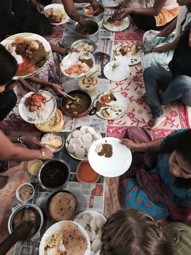 Nach dem Mittagessen kommt unsere Lehrerin und die Frauen gehen gestaffelt zum Unterricht. Dort lernen sie in persönlicher Betreuung Englisch und Mathe. An manchen Tagen gibt es außerdem kleine Überraschungen. Z.B. hatten wir letztens einen Nailpainting-Day oder einen Nachmittag, an dem wir alle zusammen besondere indische Süßigkeiten gemacht haben. Solche gemeinsamen Dinge neben dem Arbeitsalltag stärken das gesamte Team und bringen viel Spaß und Freude mit sich, wovon alle profitieren.
