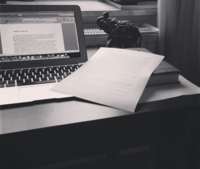 Manche haben vielleicht schon mitbekommen, dass ich einige meiner Kolumnen als Buch veröffentlichen werde. Küchenphilosophien wurde an einige Verlage herausgeschickt und steckt derzeit bei einer guten Freundin im Lektorat. Diese Wartezeit nutze ich, um mein zweites Buch zu schreiben. Und ich bin total aufgeregt, weil es sich hier natürlich nicht um bereits niedergeschriebene Arbeit handelt, sondern um eine einzige Geschichte.