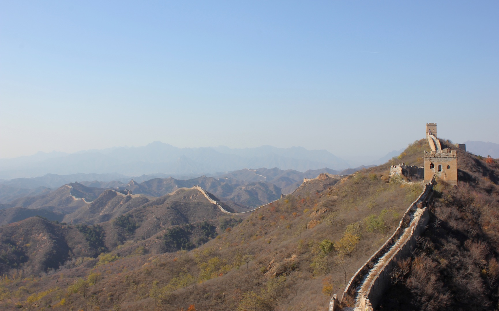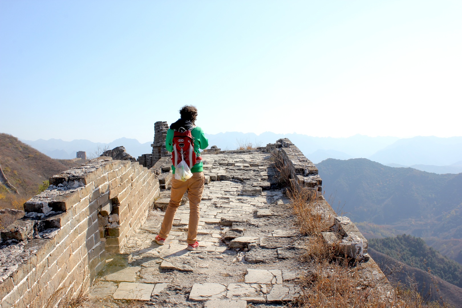 Atemberaubend. Das ist sie, die große (oder chinesische) Mauer. Mao Zedong hat mal gesagt: „Wer die Große Mauer nicht bestiegen hat, der ist kein richtiger Mann.“ Nicht, dass ich ihm da zustimmen würde, aber es ist definitiv ein umwerfendes Gefühl, auf ihr entlangzulaufen, die Weite zu spüren und die sich durch die Landschaft schlangenförmig ziehenden Mauerabschnitte zu bewundern; für ein paar Stunden zeitreisen.